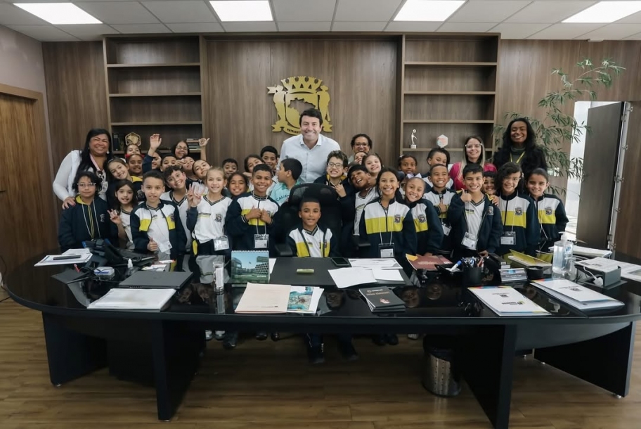 Durante a visita, os estudantes tiveram a oportunidade de conhecer de perto o funcionamento da Prefeitura, visitar o gabinete do prefeito e entender como são tomadas as decisões que impactam o dia a dia da população. Elvis Cezar conversou com os alunos, respondeu perguntas e destacou a importância da participação das novas gerações na construção do futuro da cidade.